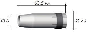 Газовое сопло цилиндрическое D17/63,5 мм (МВ24) ABICOR BINZEL, арт: 145.0047